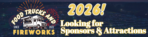 You can see images from previous events on this page, and below you'll find options to read more info, or to get in contact with our team to sponsor or bring an attraction for Food Trucks & Fireworks 2026!