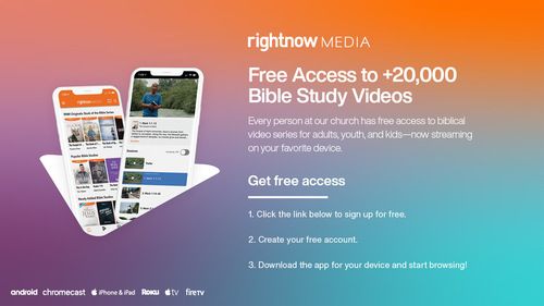 Many of our Life Groups use RightNow Media for their curriculum during the week. We want to bring the curriculum to you. Now you can download the audio to your phone, watch it on your TV with your family, or use the study guides to use in your own Life Group. All for free.